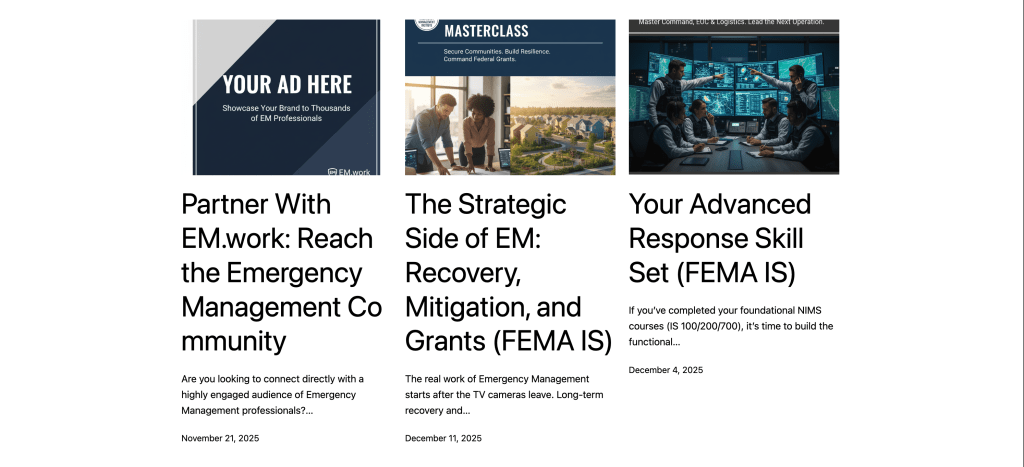 The emergency management field deserves a job board built specifically for it. EM.work connects EM professionals with opportunities across government, nonprofit, and private sector, all in one place.